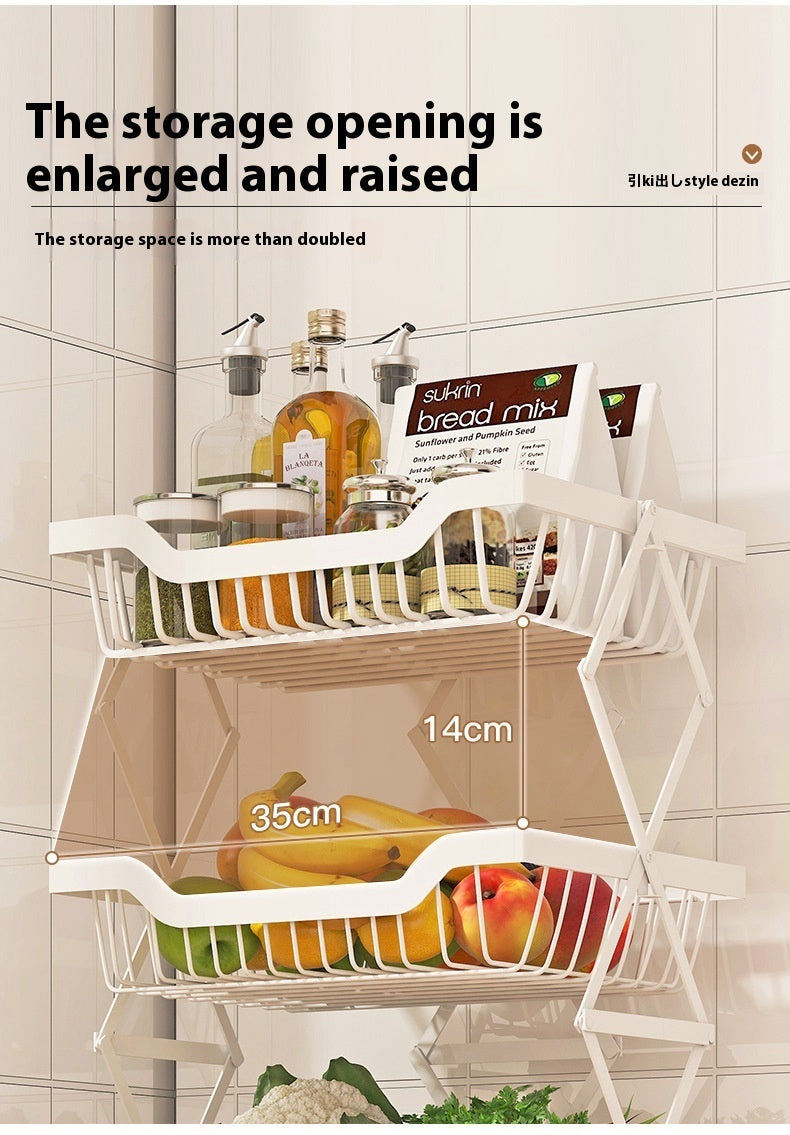 Kitchen Storage Rack Floor Folding Multi-layer Gap Vegetable Fruit Basket Storage