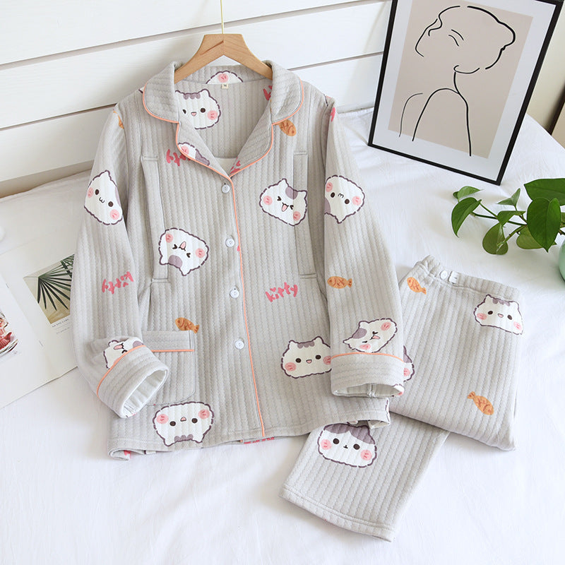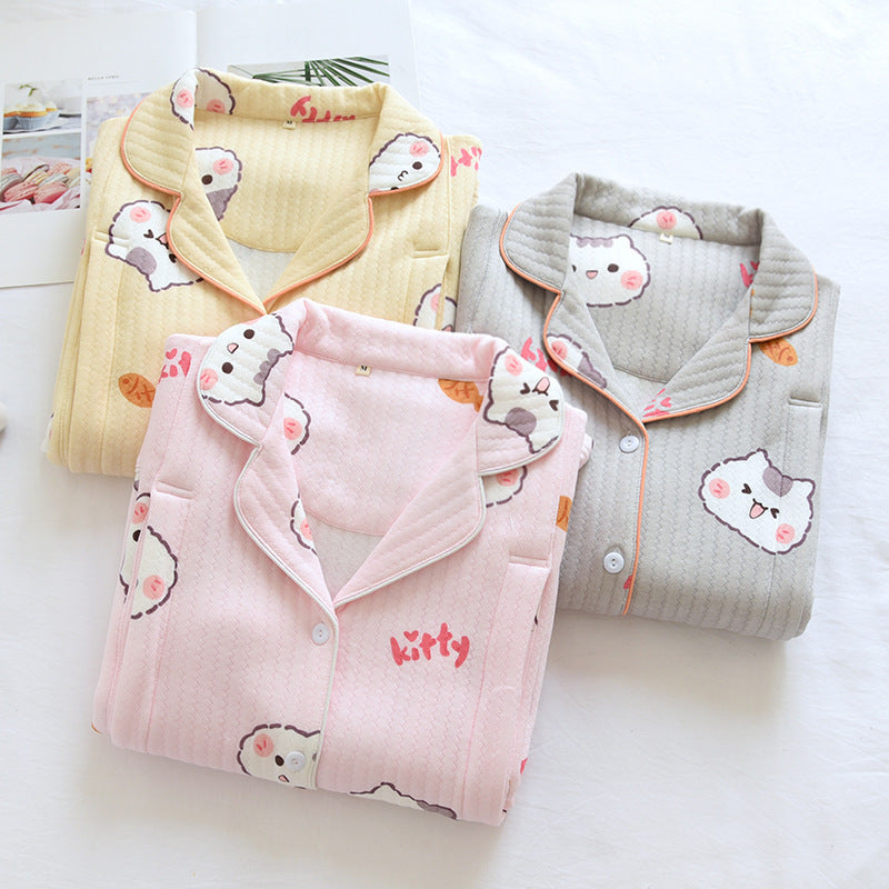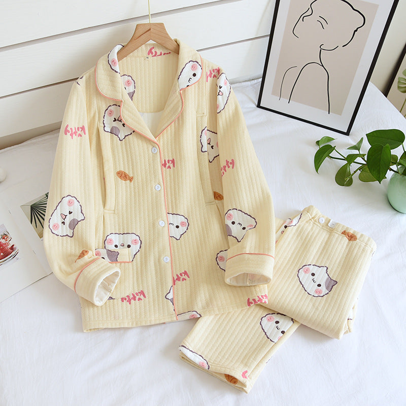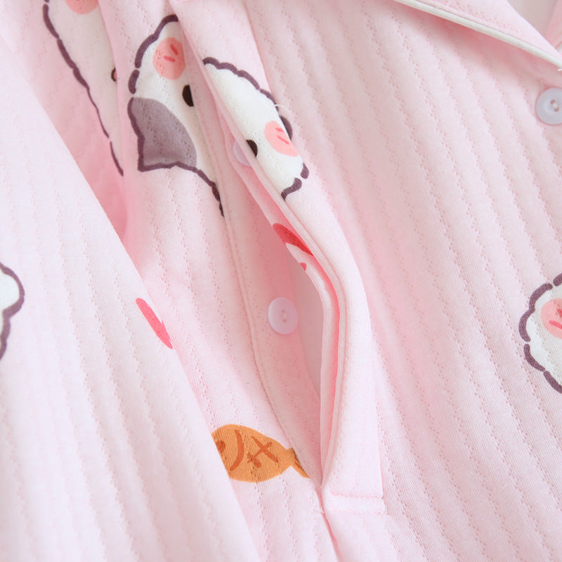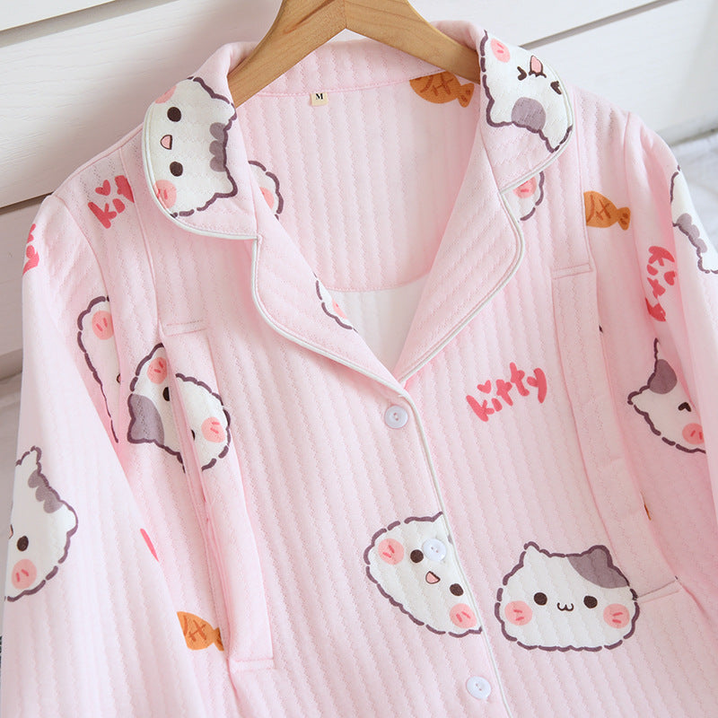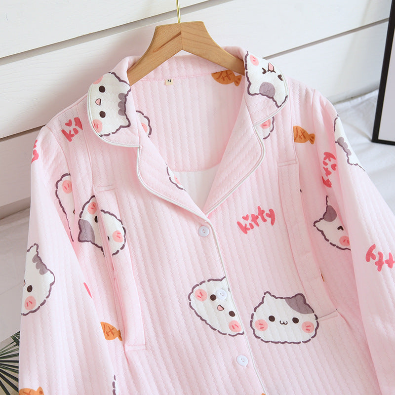 Kitten Air Layer Nursing Pajamas Thickened Set