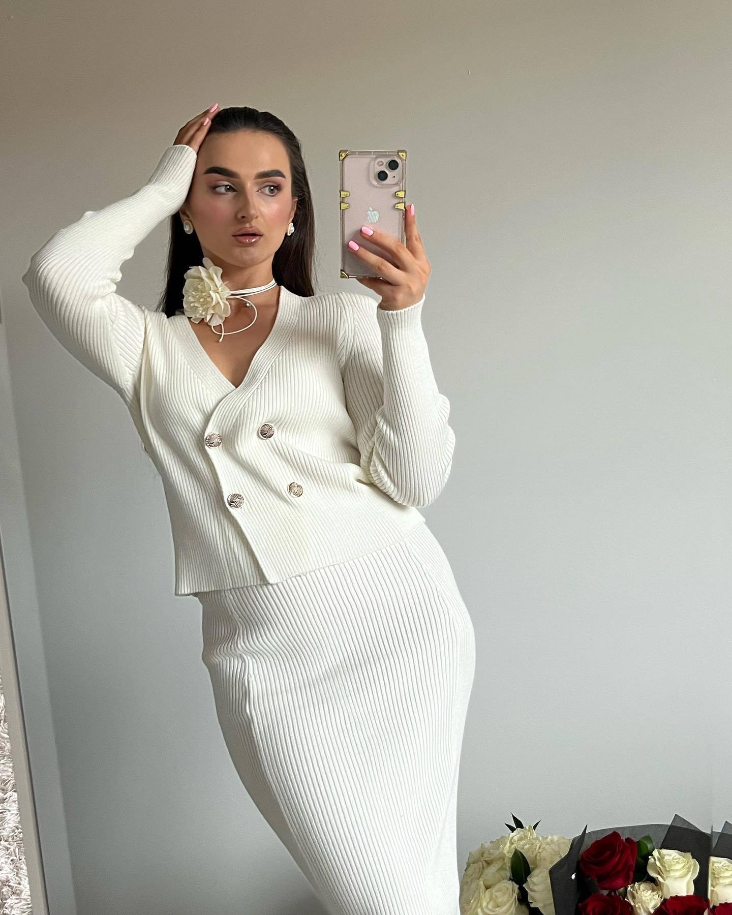 Knitted Long Sleeve Sweater Women's Skirt