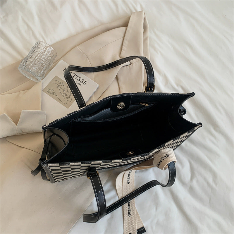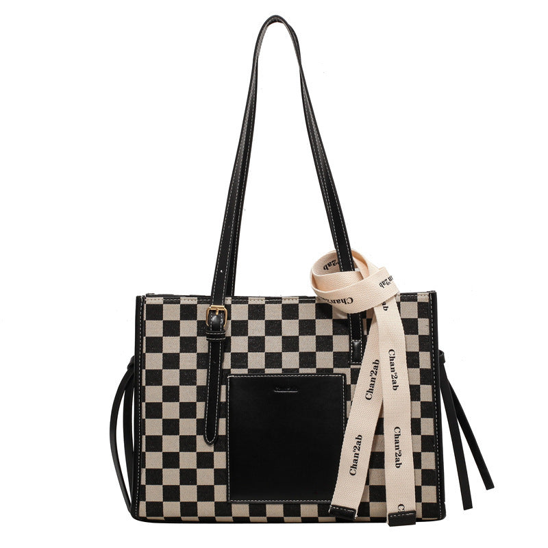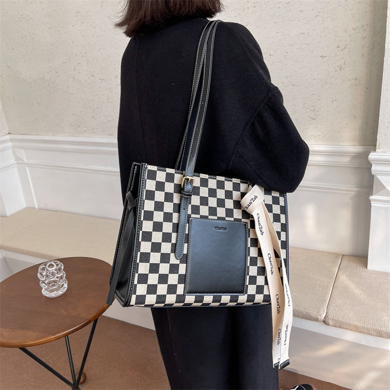 Ladies Checkerboard Contrast Color Plaid Generous Bag