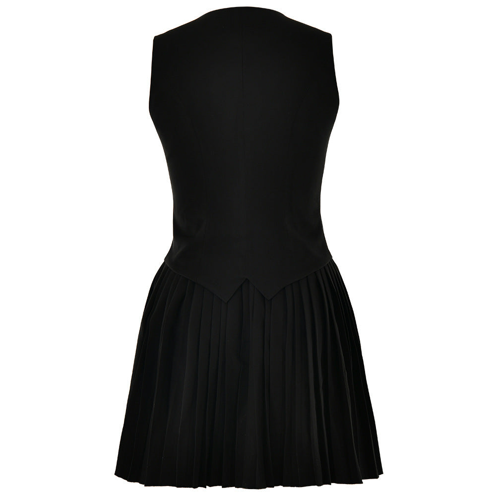 Ladies' Vest Solid Color Pleated Skirt Suit