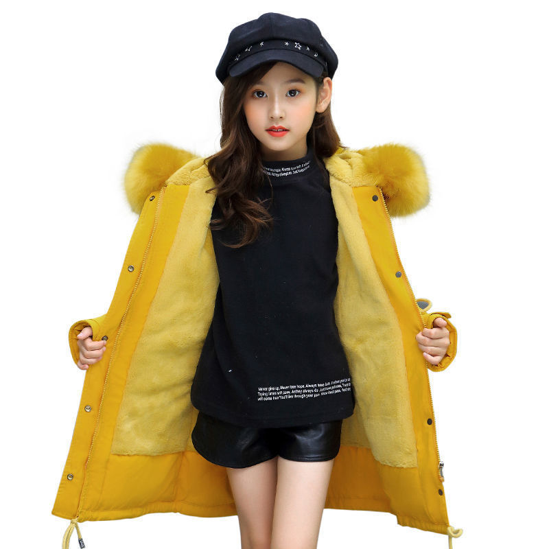 Middle And Large Children's Cotton Coats In The Long Style With Velvet Liner